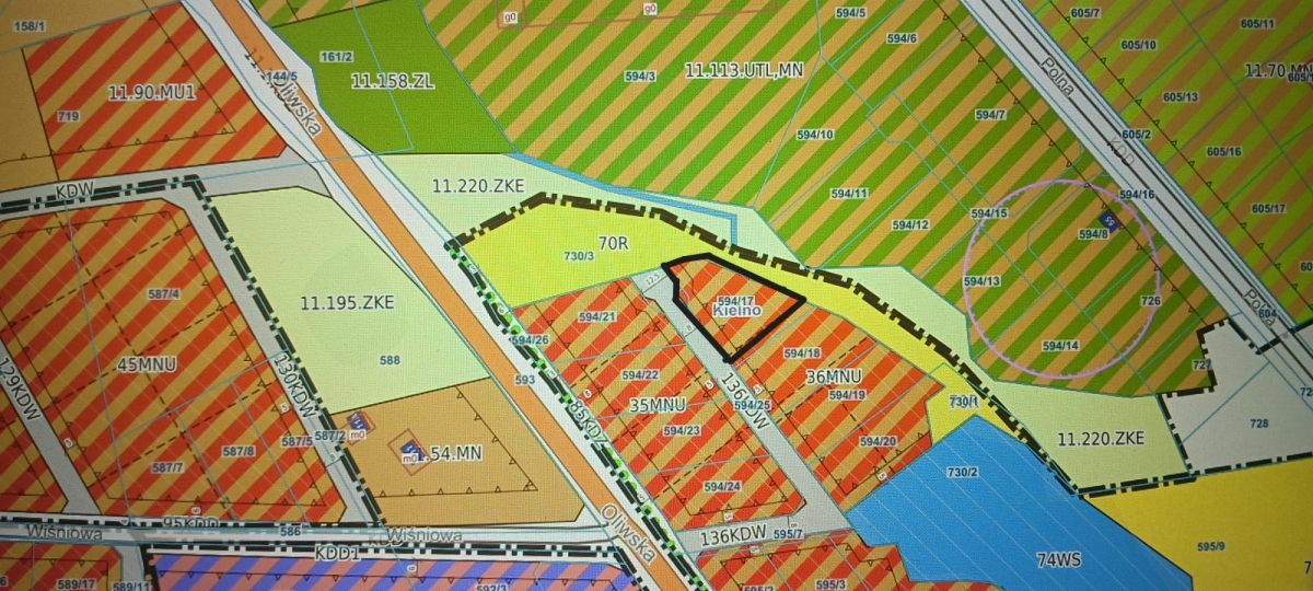 Działka budowlana o powierzchni 1048 m2, położona w Kielnie k. Szemuda, w powiecie wejherowskim, w gminie Szemud o numerze ewidencyjnym 594/17.Teren objęty jest Miejscowym Planem Zagospodarowanie Przestrzennego o symbolu: 36 MNU: